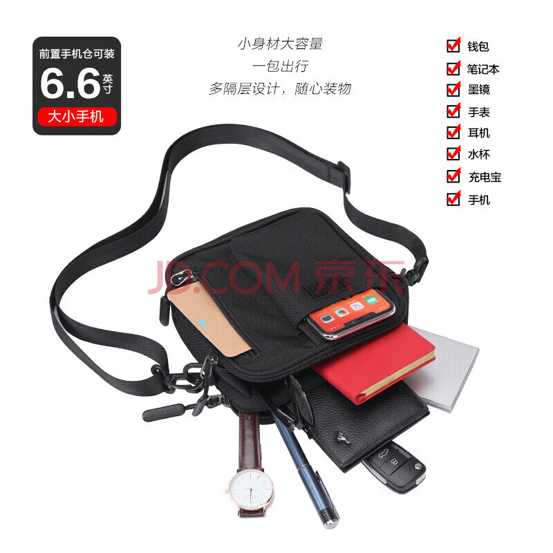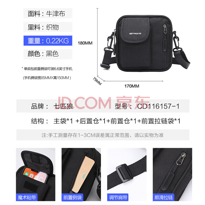 商品相册:七匹狼单肩包男士休闲斜挎包潮流帆布包高级黑旅行小挎包手机背包第