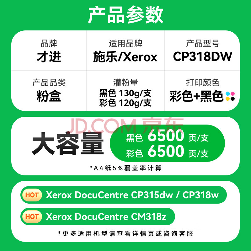 商品相册:才进适用富士施乐CP318dw粉盒彩色DocuPrint cm318z墨粉cp315dw打印机墨盒硒鼓cm315z复印机碳粉cp318w墨粉筒第