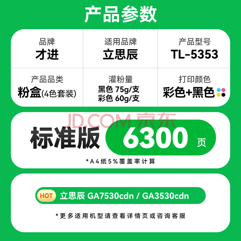 商品相册:才进适用立思辰GA7530cdn粉盒彩色GA3530cdn墨盒GA3531cdn复印机墨粉盒GA3532cdn硒鼓GA3533cdn标准版TL-5353第