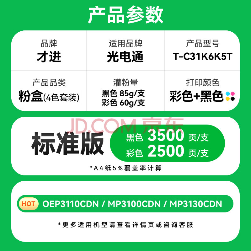 商品相册:才进适用光电通T-C31K6K5T粉盒OEP 3110/3112/3115CDN彩色激光打印机硒鼓MP3100/3104/3105CDN墨盒T-C3130KTC第