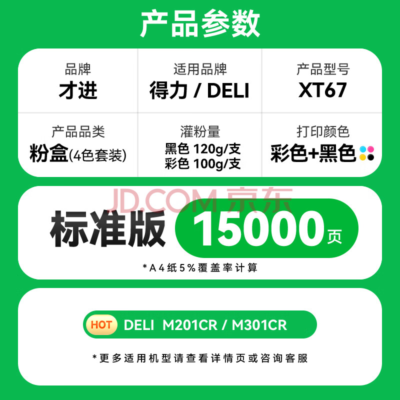 商品相册:才进适用得力XT-67粉盒M201CR彩色复印机墨盒XT67Ke打印机硒鼓DELI XT67易加粉晒鼓墨粉盒碳粉盒墨粉筒带芯片第