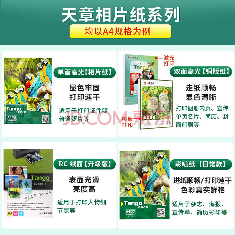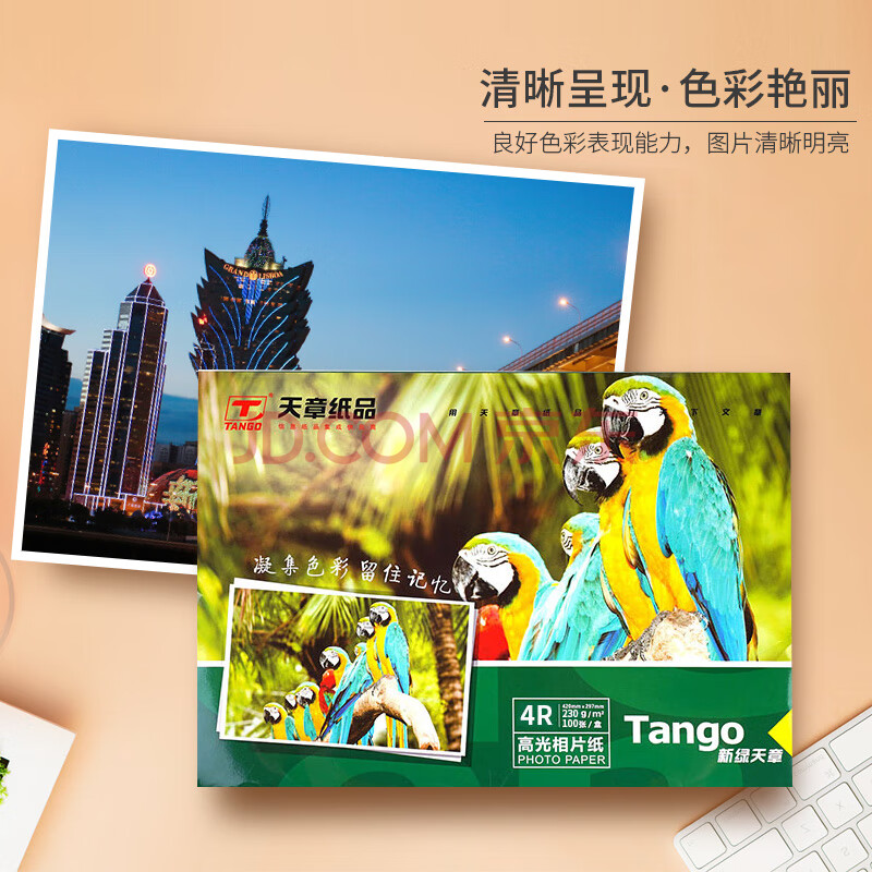 商品相册:天章 (TANGO)4R 6寸单面高光相片纸 230g名片定制打印相片 彩色照片打印纸 6英寸证件照打印机照相纸 100张/包第