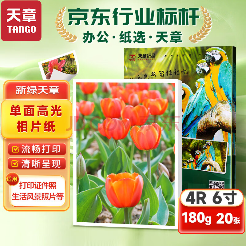 商品相册:天章 (TANGO)新绿天章 6寸相纸 180g 高光相片纸 照相纸 6寸喷墨照片打印纸 20张/包第