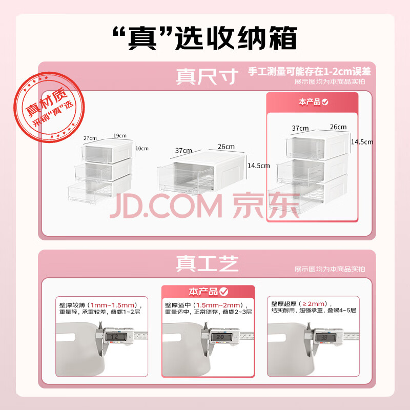 商品相册:SPACEXPERT 衣物收纳箱抽屉收纳盒储物箱 14L透白 3个装第