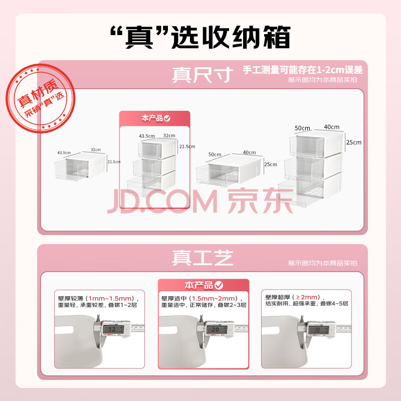 商品相册:SPACEXPERT 衣物收纳箱特大号抽屉收纳盒储物箱 30L透白 3个装第1张/共4