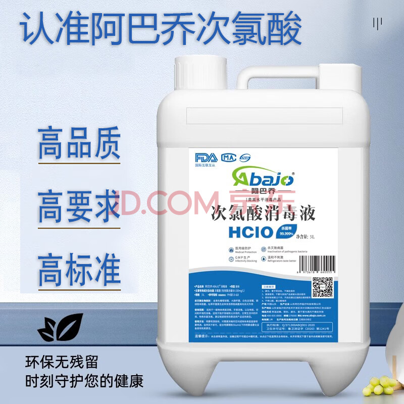 商品相册:阿巴乔(Abajo)次氯酸消毒液居家安全消毒 工程车间消毒 5L+500毫升喷雾无刺激 第