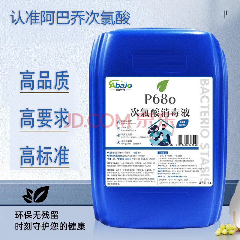 商品相册:阿巴乔(Abajo)【企业专属】次氯酸消毒液25L大桶 商用机场医院学校猫舍消毒第