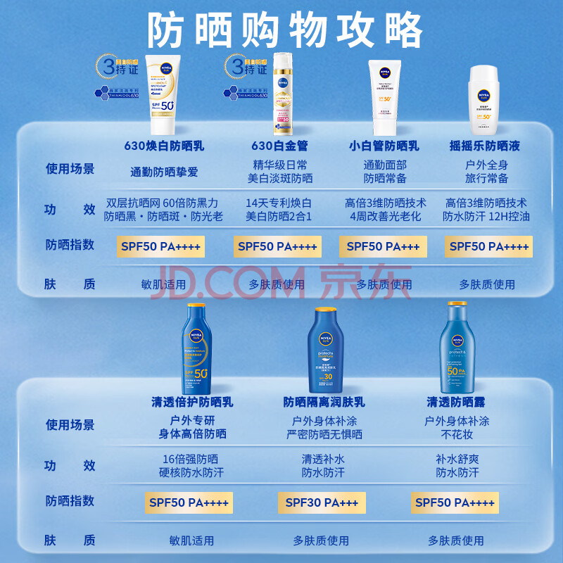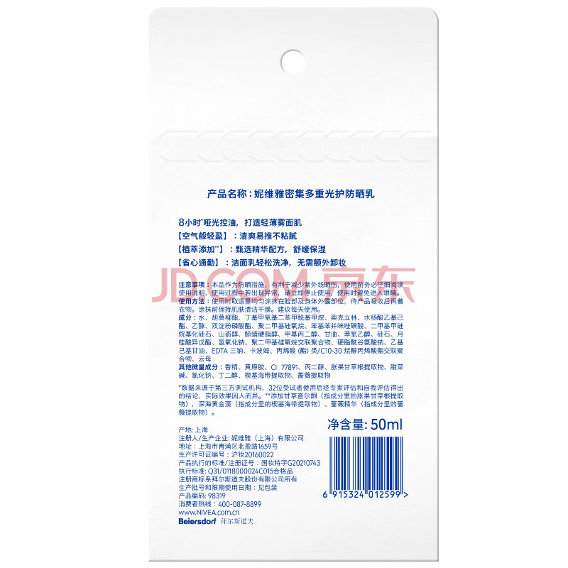 商品相册:妮维雅(NIVEA)清爽不油腻高倍防晒霜 密集多重光护防晒乳50mlSPF50+第
