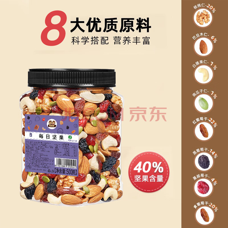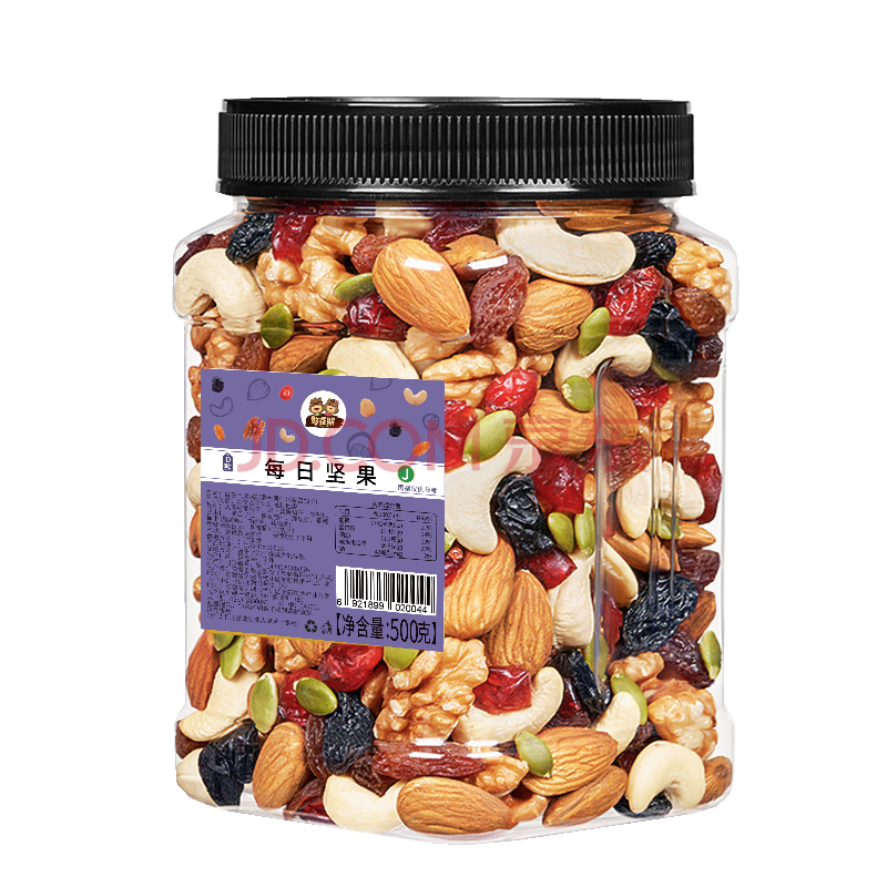 商品相册:憨豆熊 罐装每日坚果500g 干果核桃腰果葡萄干休闲零食年货送礼第