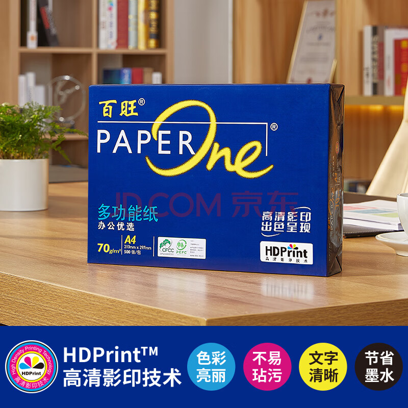 商品相册:亚太森博高档蓝百旺 A4打印纸 70g500张*5包 复印纸 高清影印技术 碳足迹认证 2500张【专业造纸厂牌】第