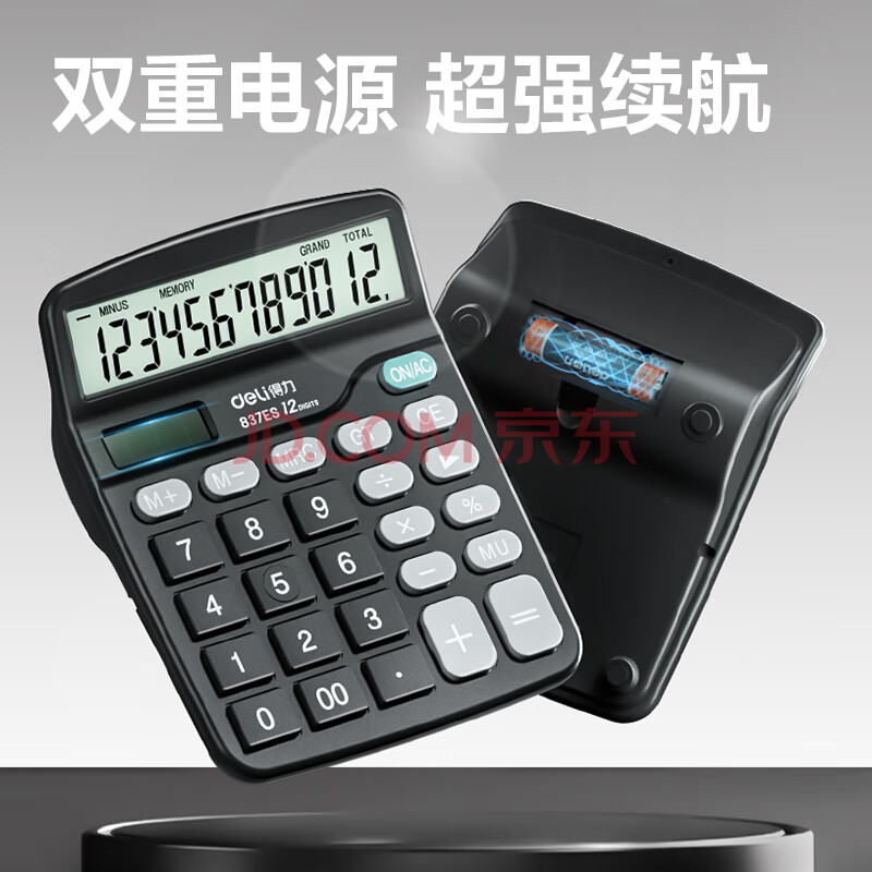 商品相册:得力(deli)【全网低价】双电源桌面办公计算器 12位大屏幕桌面计算机 办公文具用品 837ES第