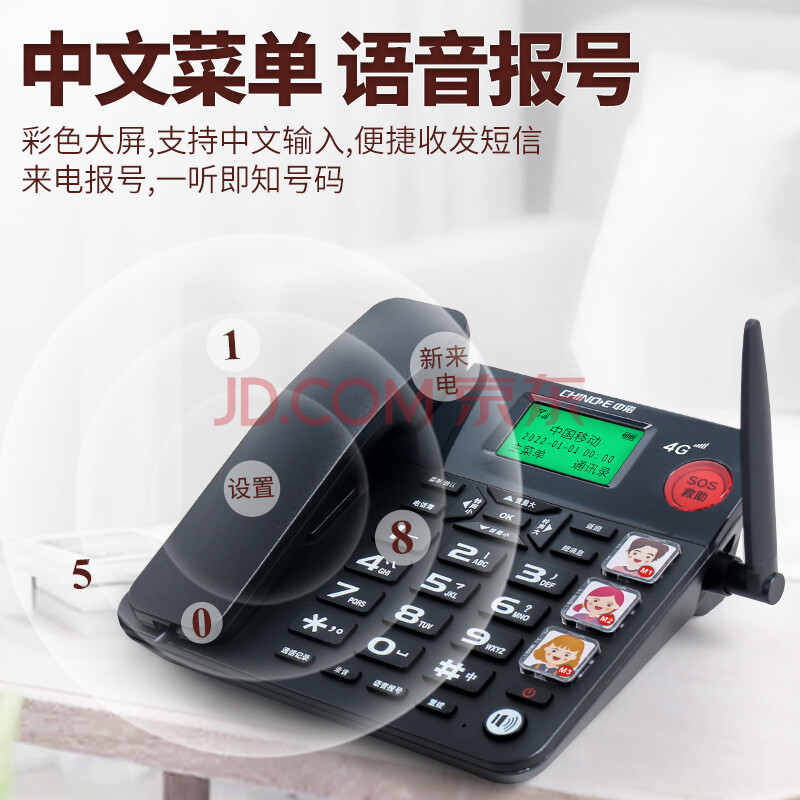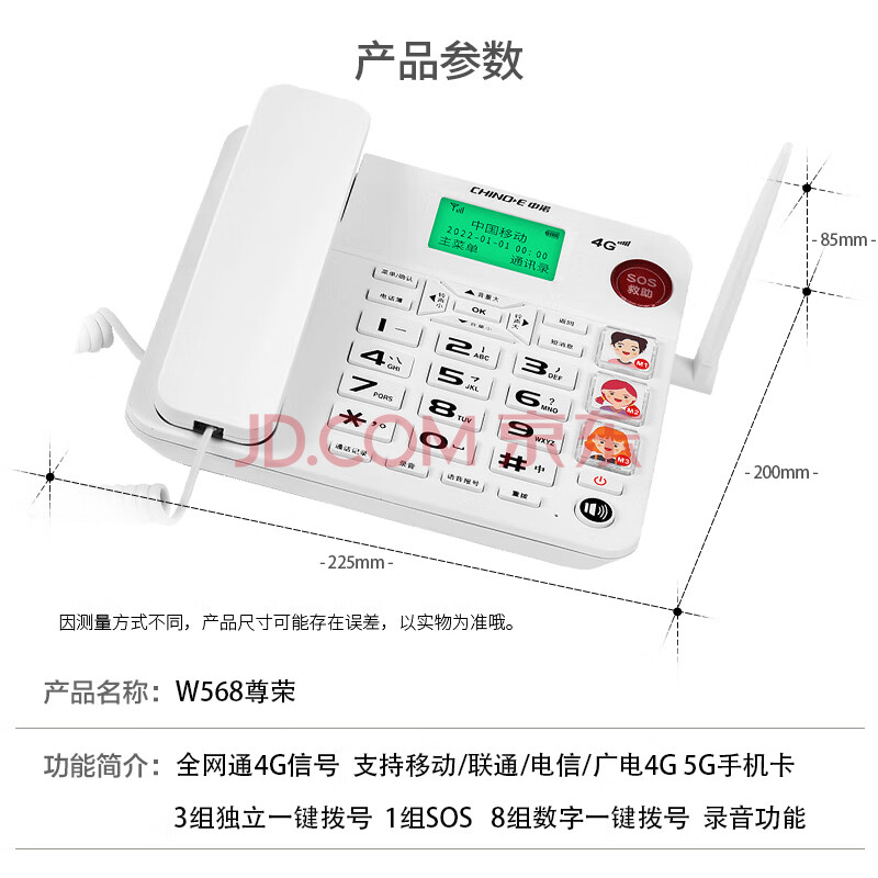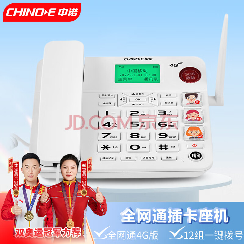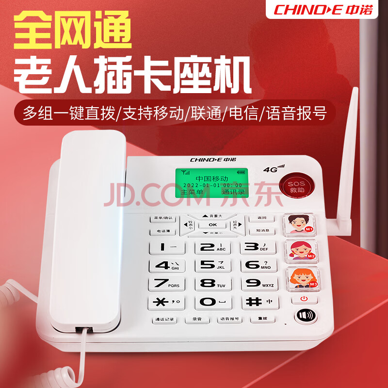 商品相册:中诺全网通无线固话式插卡电话机座机支持广电移动联通电信4G网兼容2g网家用办公老人固定W568全网通白第