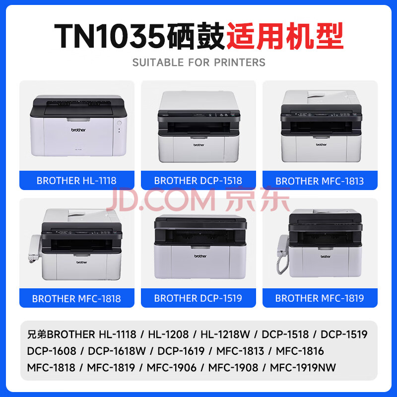 商品相册:天色TN1035粉盒适用兄弟打印机墨盒dcp1608硒鼓1608粉盒 mfc1919nw硒鼓1618w 1813 1816 1818 1819 HL1208 1218w第