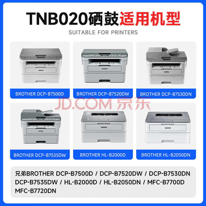 商品相册:天色适用兄弟TN-B020粉盒DCP-B7530DN B7500D B7535DW打印机硒鼓DCP-B7520DW MFC-B7700D B2000D HL-B2050DN第