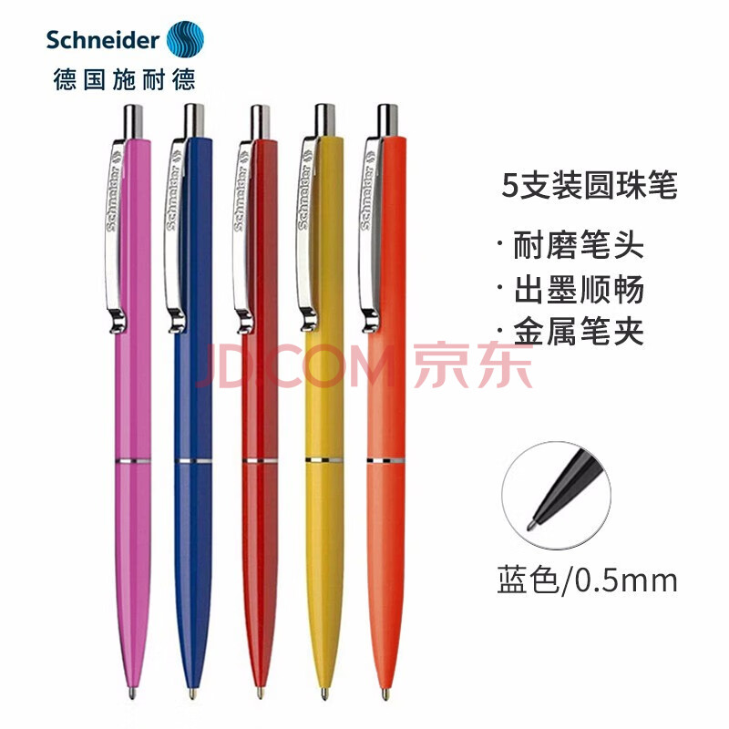 商品相册:施耐德(Schneider)圆珠笔 按压式大容量0.5mm子弹头可换芯原子笔学生日常办公用K15蓝芯-5支混装第1张/共5