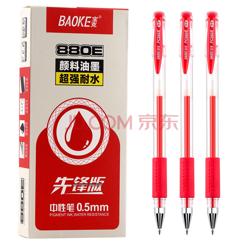 商品相册:宝克(BAOKE)PC880E 0.5mm子弹头中性笔 办公水笔签字笔 红色 12支/盒第