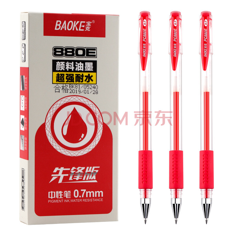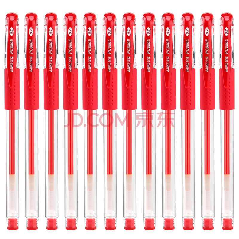 商品相册:宝克(BAOKE)PC880E 0.7mm子弹头中性笔 办公水笔签字笔 红色 12支/盒第