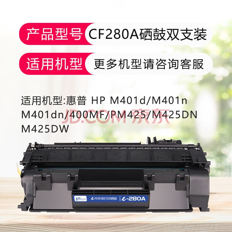 商品相册:e代 CF280A硒鼓双支装 适用惠普HP 280a/80a硒鼓 hp400硒鼓M401A/M401N/M401DN/M425DN/M425DW/p2035n打印机第