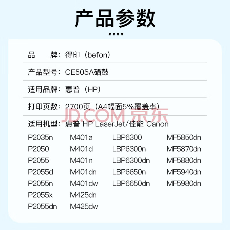 商品相册:得印CE505A硒鼓适用惠普2055d硒鼓P2035 2035D 2035N P2055 HP400 m401d m425dn cf280a硒鼓第