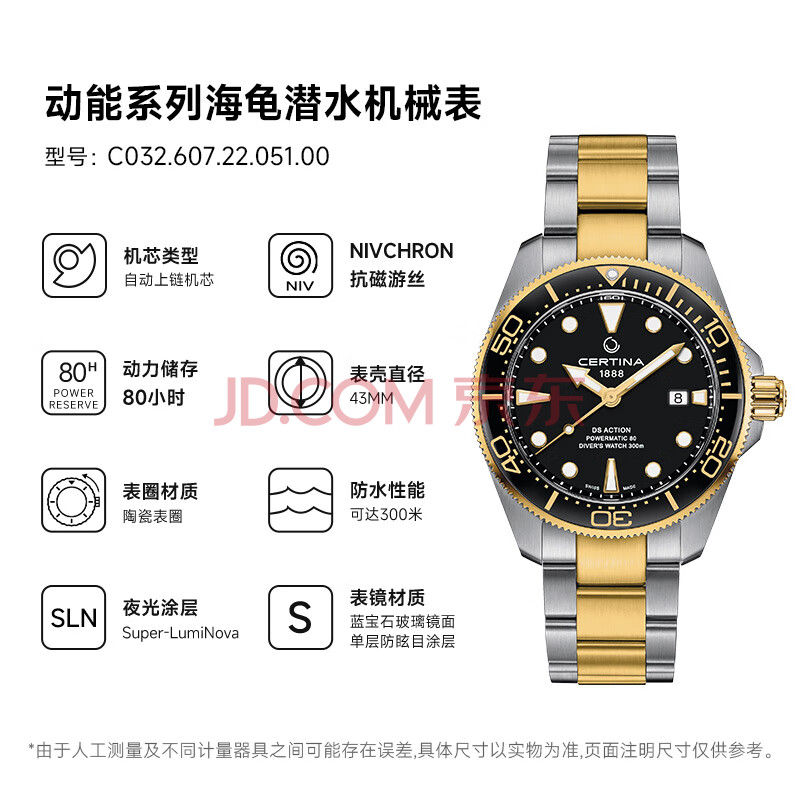 商品相册:雪铁纳(Certina)瑞士手表动能系列海龟陶瓷圈运动机械男表第