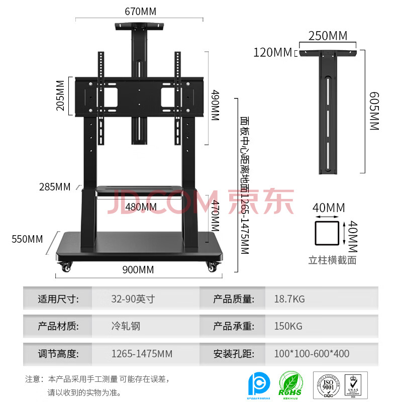 商品相册:ProPre移动电视支架32-90英寸适用于TCL海信创维通用移动落地电视支架电视挂架推车华为智慧屏推车落地第