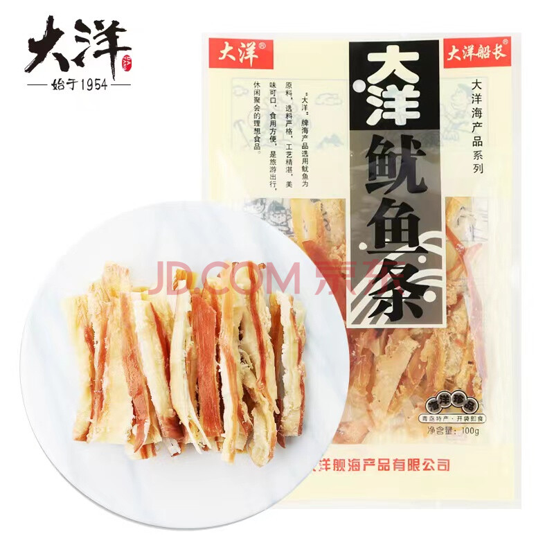 商品相册:大洋船长大洋手撕鱿鱼条100g山东青岛特产解馋零食炭烤鱿鱼海味休闲食品第