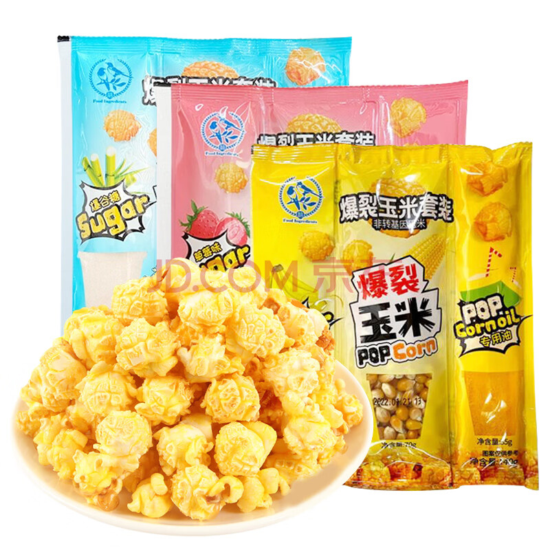 商品相册:鹊牌爆米花套装480g三口味奶香+香蕉+草莓味 DIY自制爆米花休闲零食第