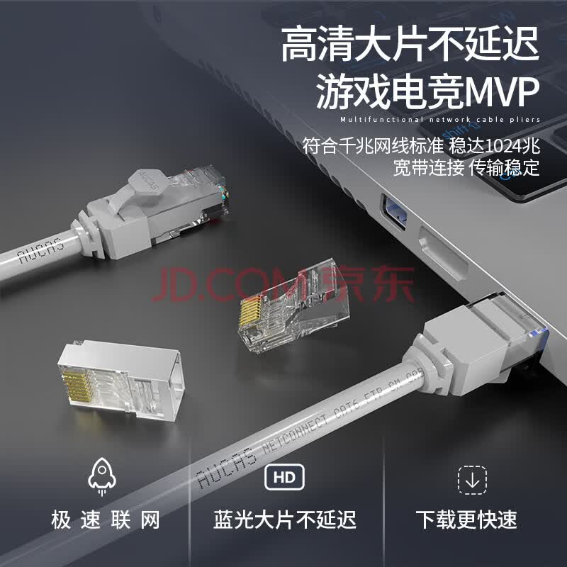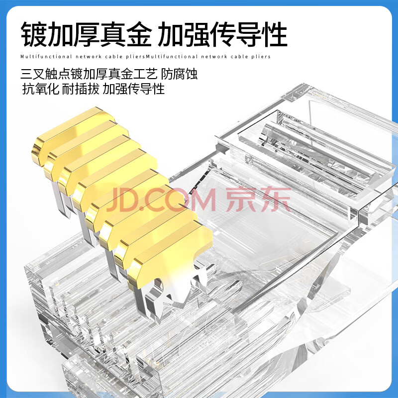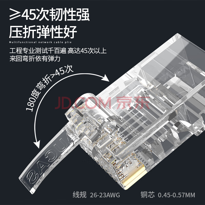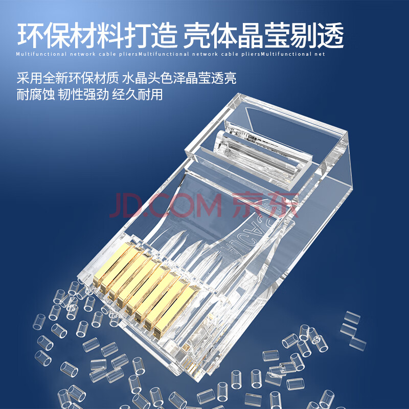 商品相册:奥卡斯(AUCAS)超五类水晶头 cat5e电脑网络连接器RJ45工程级8P8C超5类镀金水晶头连接头100个/罐 ACRJ55UP第