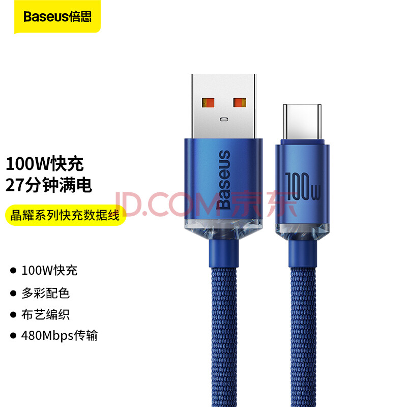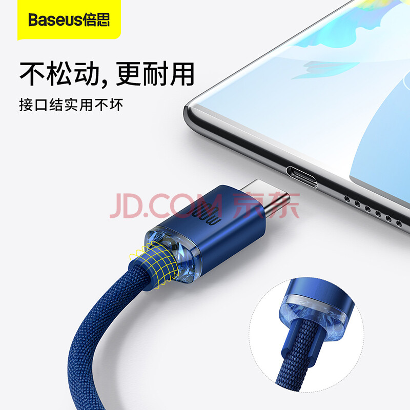 商品相册:倍思Type-C数据线适用66W华为6A充电线华为Mate70Pro/P600/500荣耀100W超级快充 2米蓝第