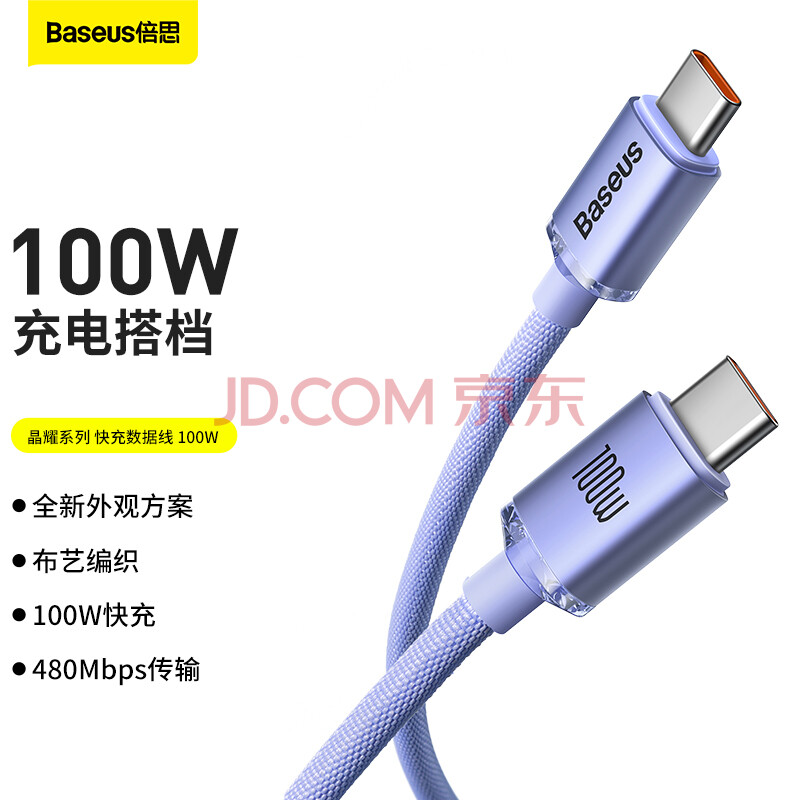 商品相册:倍思双Type-C数据线PD100W快充线CtoC充电线5A苹果15/16/17手机ipad/macbook华为小米笔记本第