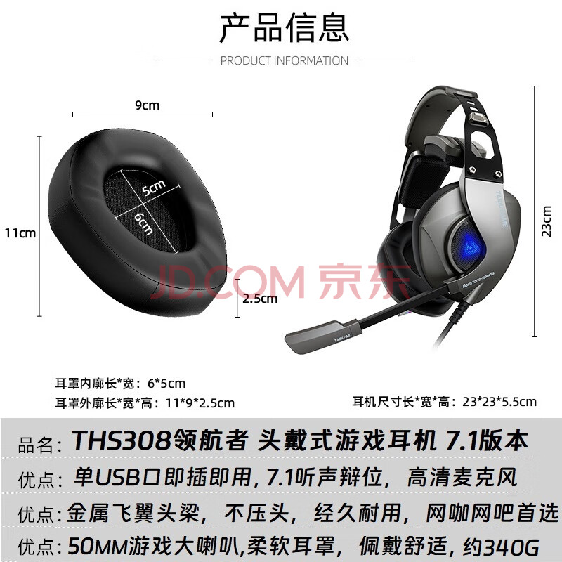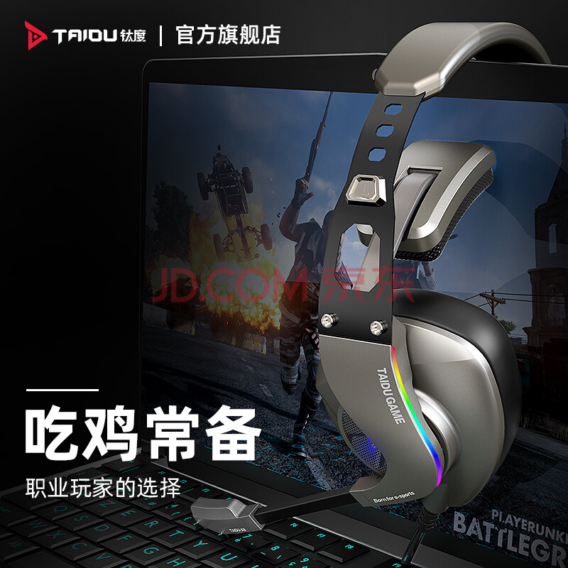 商品相册:钛度THS308A2领航者 游戏耳机 电脑usb7.1环绕音 飞翼头梁透气耳罩 RGB炫彩灯 吃鸡三角洲行动 金属灰第
