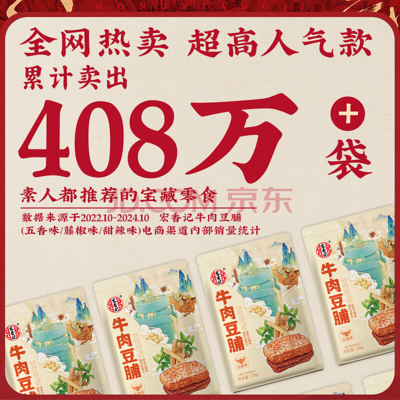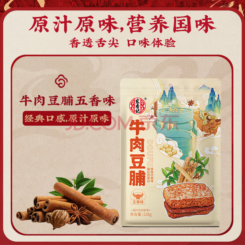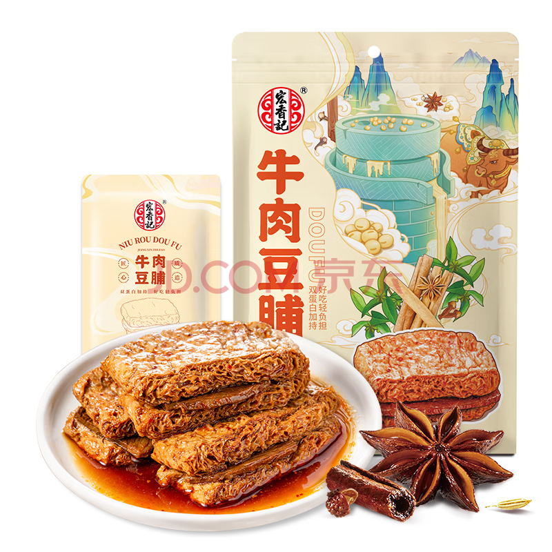 商品相册:宏香记 手撕牛肉豆脯五香味128g袋装素肉排豆干办公零食礼盒礼包第1张/共6