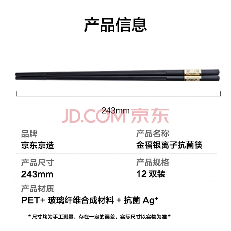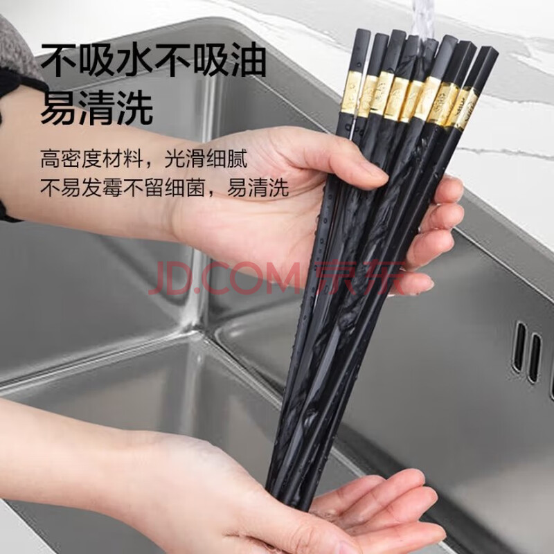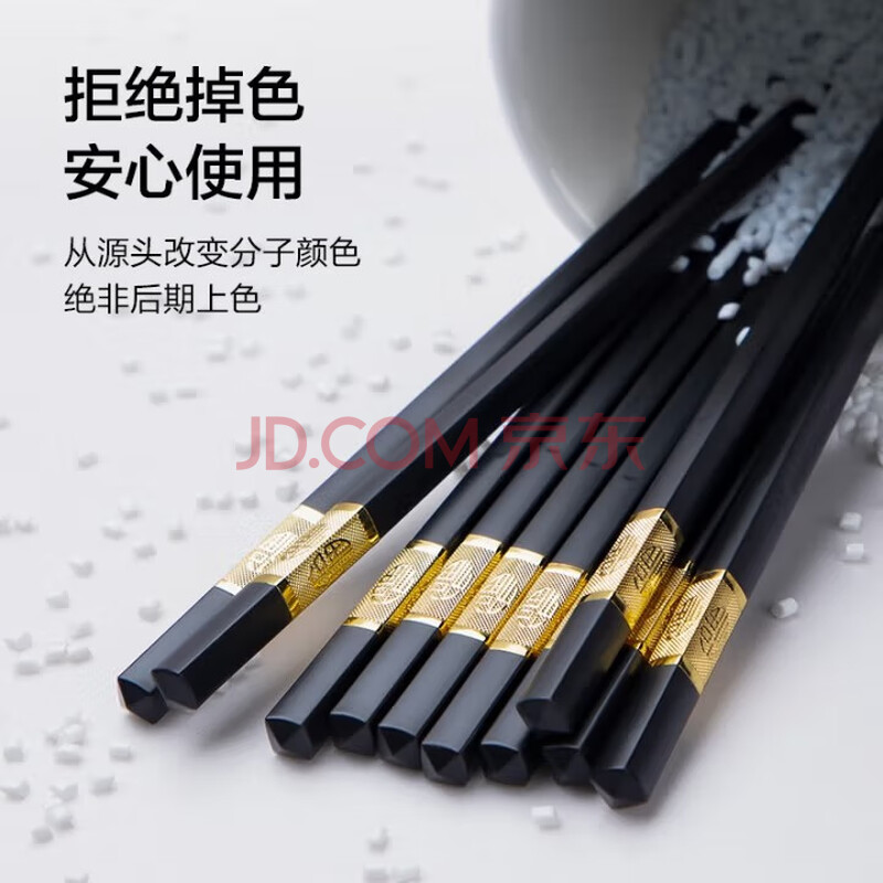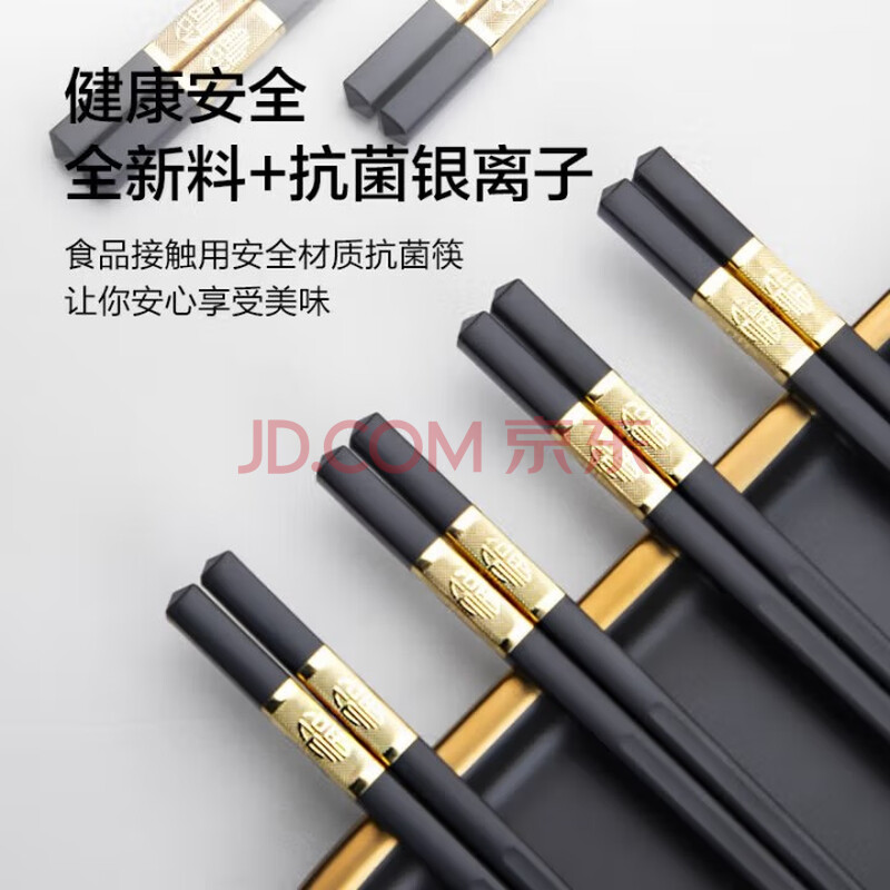 商品相册:京东京造 筷子 家用食品接触级餐具套装合金金福款【抗菌耐高温】12双第