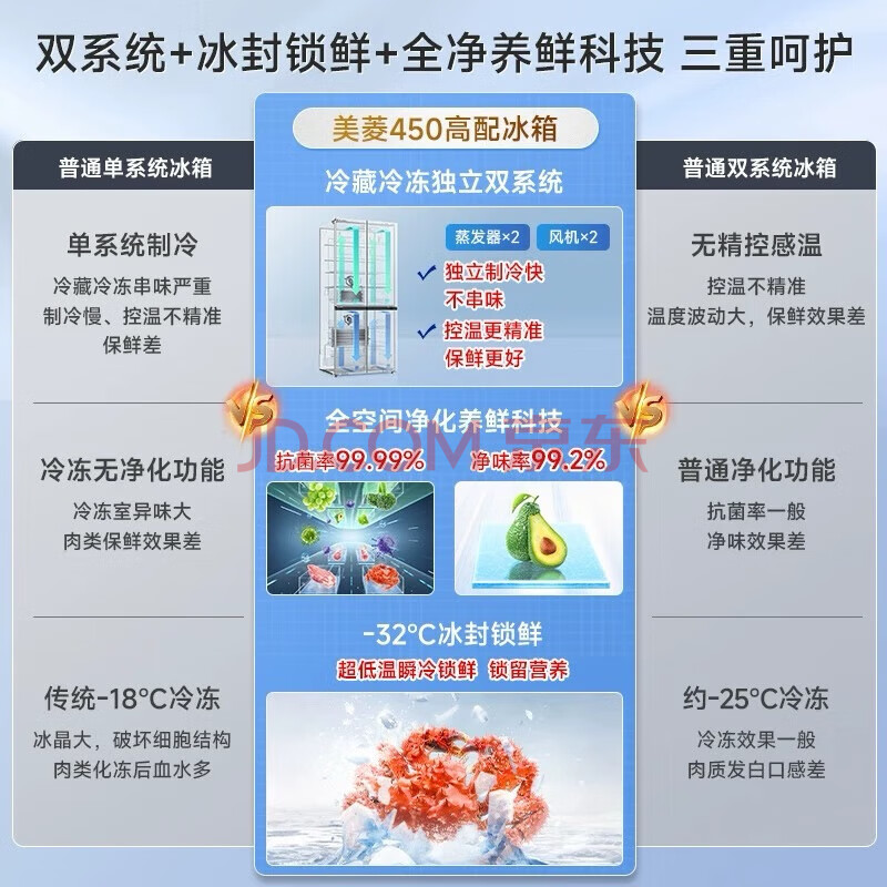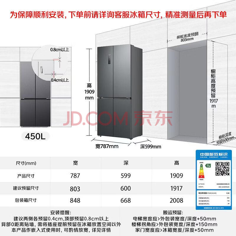 商品相册:美菱冰箱450升十字四开门无忧嵌59.9cm超薄零嵌入式双系统变频一级能效风冷无霜BCD-450WP9CZX第