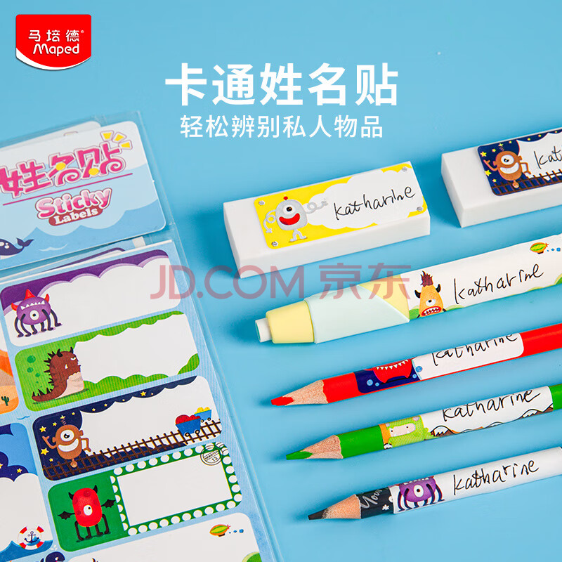 商品相册:马培德(Maped)卡通姓名贴 儿童幼儿学生班级名字贴纸 即用即贴 无痕贴手写姓名标签 775011CH【15枚/张】第