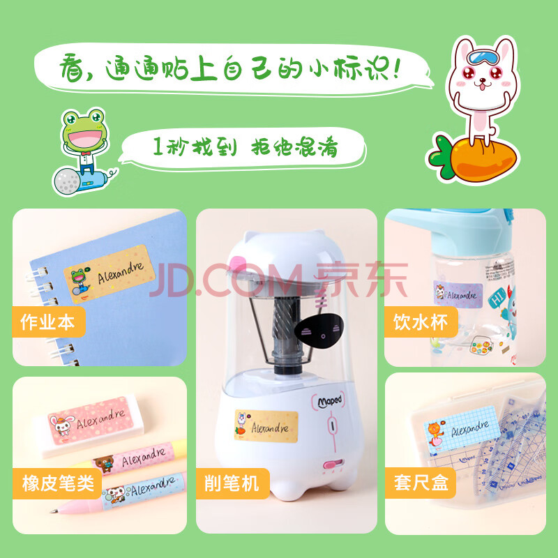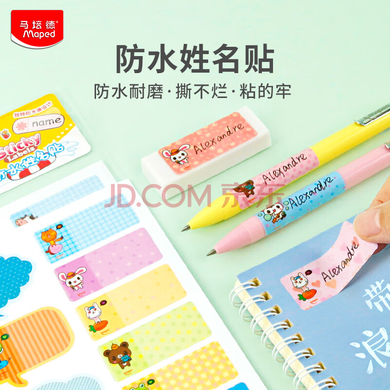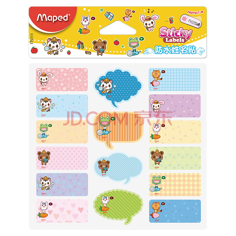 商品相册:马培德(Maped)卡通防水姓名贴 儿童幼儿学生班级名字贴纸 即用即贴 无痕手写标签 775111CH随机图案【16枚/张】第