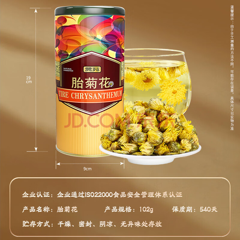 商品相册:贡苑 菊花茶胎菊102g 特优级胎菊茶搭玫瑰枸杞金银花泡水喝的养生花茶第
