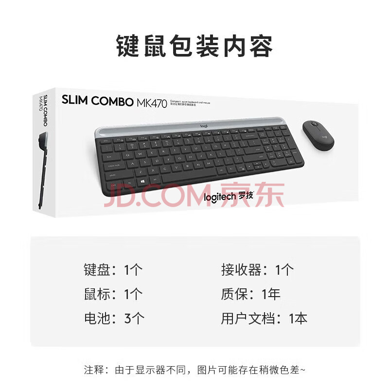 商品相册:罗技MK470 办公差旅超薄便携紧凑无线键鼠套装 全尺寸鼠标电脑静音薄膜键盘 带无线2.4G接收器 黑色第