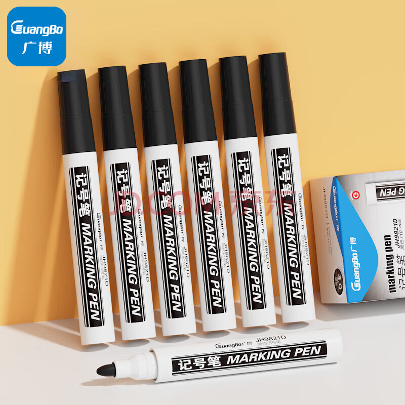 商品相册:广博黑色速干油性记号笔 经典款快递包裹物流仓库用大头笔签字笔 10支装 办公用品文具 JH9821D第1张/共9