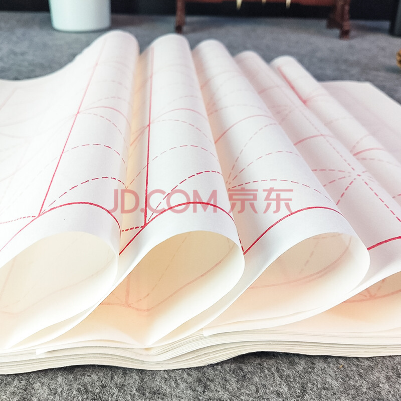 商品相册:芬尚 米格宣纸书法纸毛笔书法米字格纸 学生初学毛笔字墨汁练习用纸四尺四开生宣 格宽6cm*50格100张69*34cm第