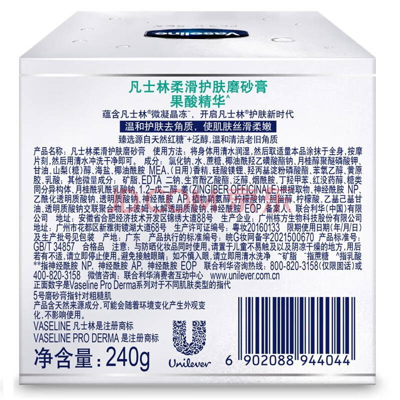 商品相册:凡士林果酸柔滑护肤身体磨砂膏240g 搓泥宝丝滑去角质鸡皮第