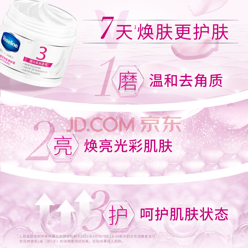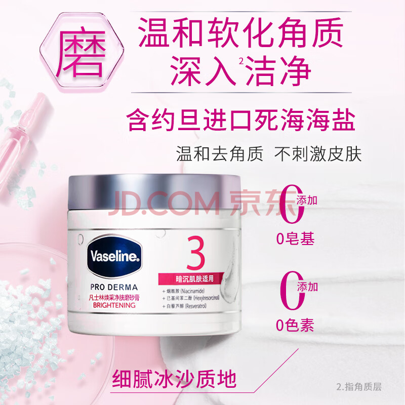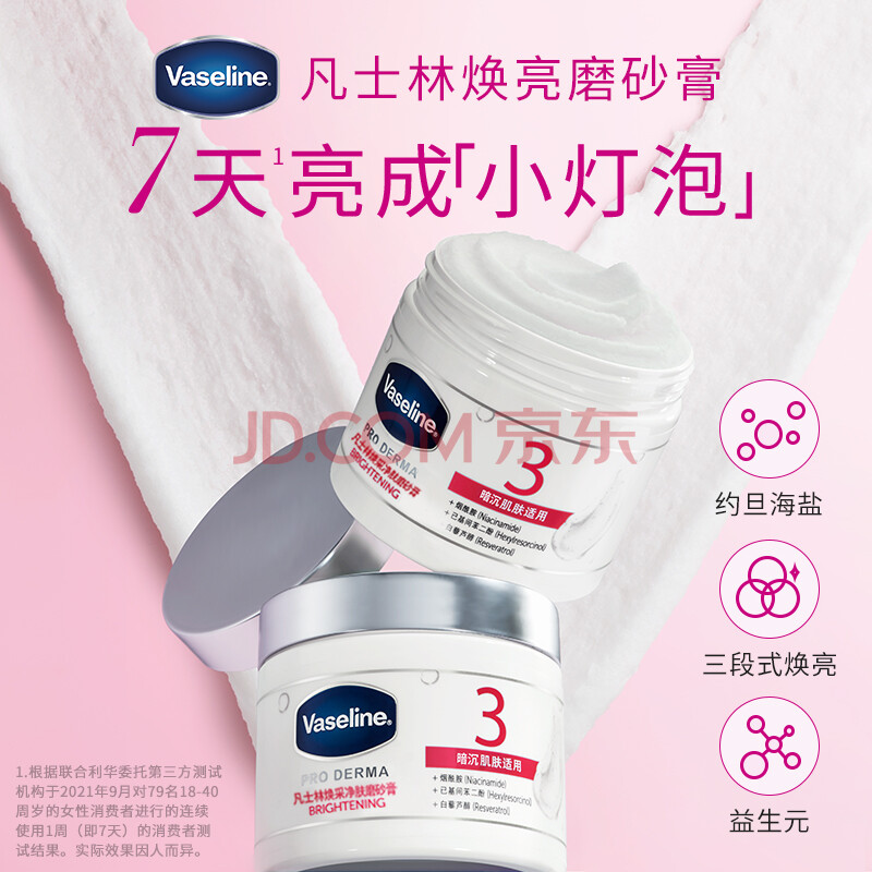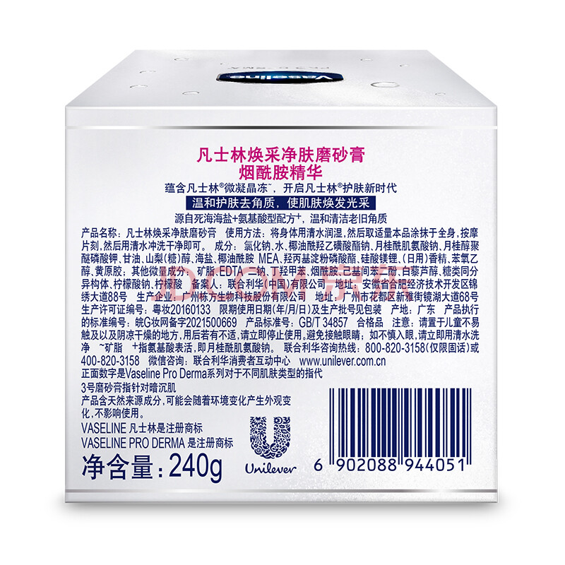 商品相册:凡士林烟酰胺焕采净肤身体磨砂膏240g 搓泥宝丝滑去角质鸡皮第1张/共8