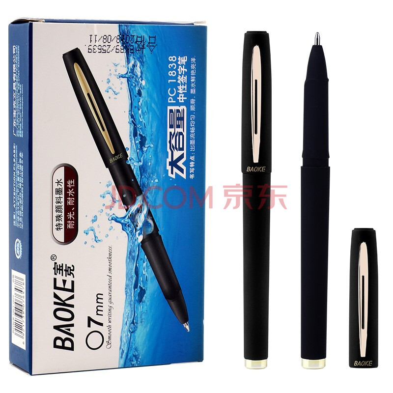商品相册:宝克(BAOKE)【热门商品】PC1838 0.7mm大容量中性笔品质办公签字笔磨砂笔杆水笔 黑色 12支/盒第