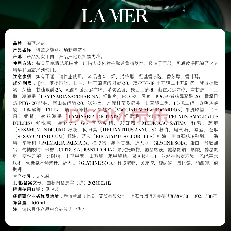 商品相册:海蓝之谜(LA MER)修护焕新精萃水100ml精粹水爽肤水护肤品套装化妆品礼盒生日礼物第