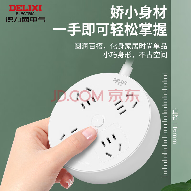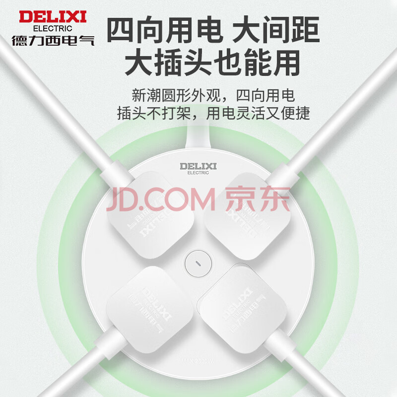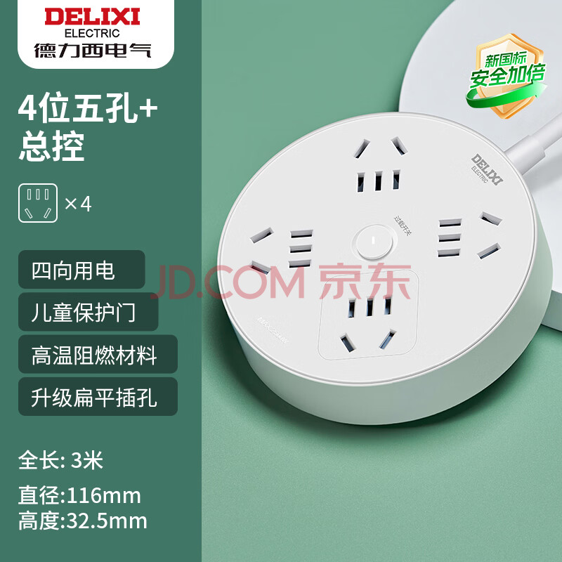 商品相册:德力西(DELIXI)插座/插线板/插排/排插/拖线板/接线板 圆形插座4位总控 全长3米总控开关第