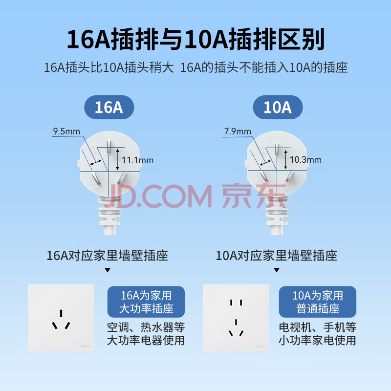 商品相册:德力西(DELIXI) 16A大功率空调插座3C认证 带开关插线板/插排/排插/接线板/拖线板 2位总控全长0.8米第