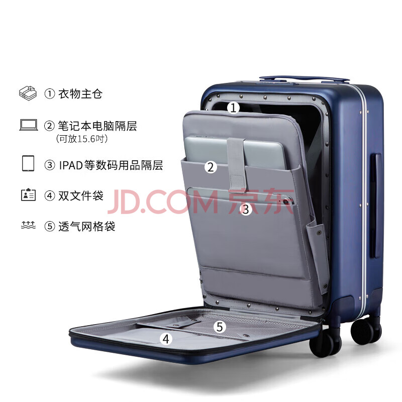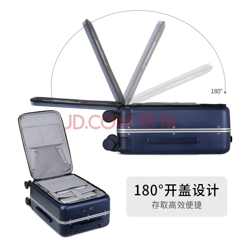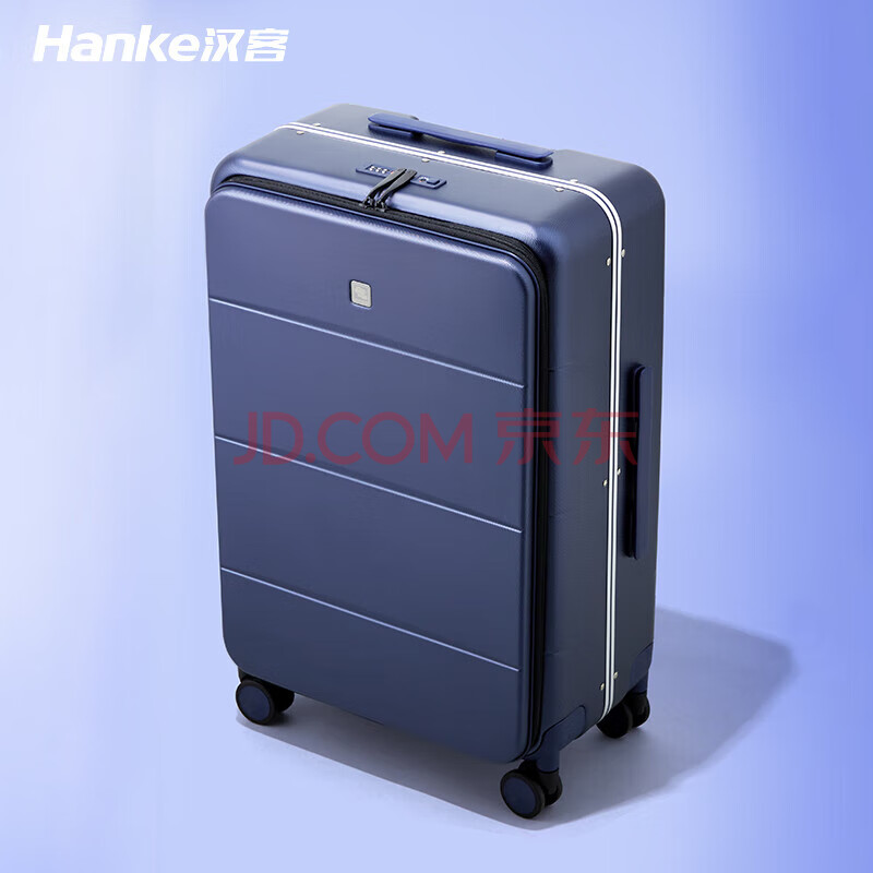 商品相册:汉客前开盖拉杆箱铝框箱登机行李箱旅行箱20英寸黛蓝色男女商务密码箱第