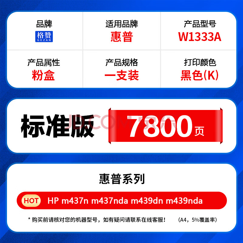商品相册:格赞W1333A粉盒适用惠普HP m437n墨盒m437nda M437dn硒鼓m439n M439dn m439nda W1333X墨粉盒 带芯片第