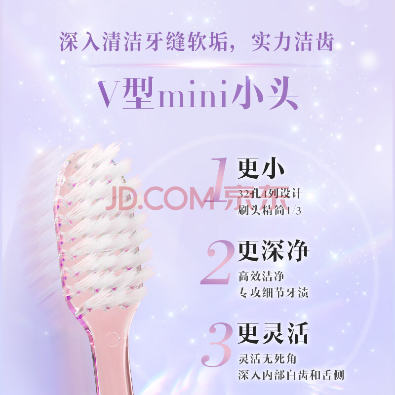 商品相册:极简生活牙刷 晶巧V型小头软毛护龈清洁成人2支(新老随机发货)灵活清洁第