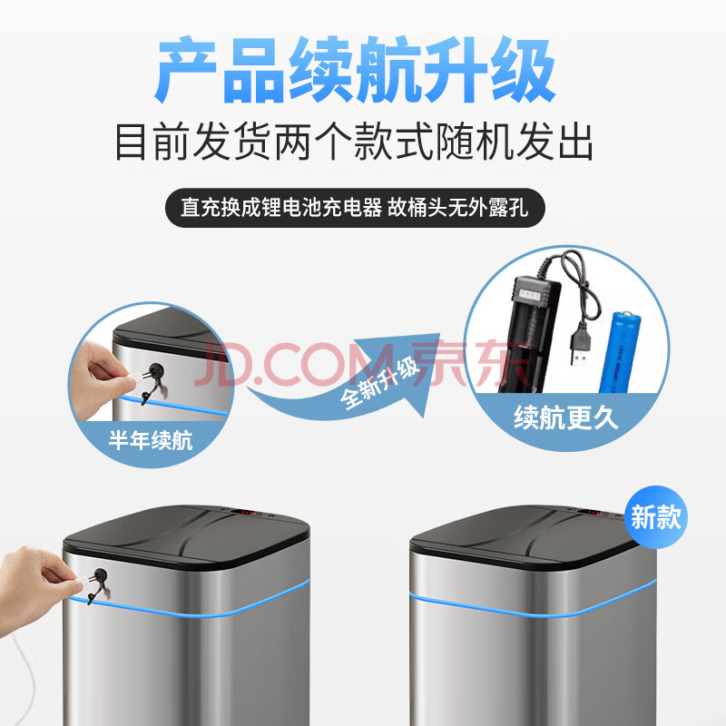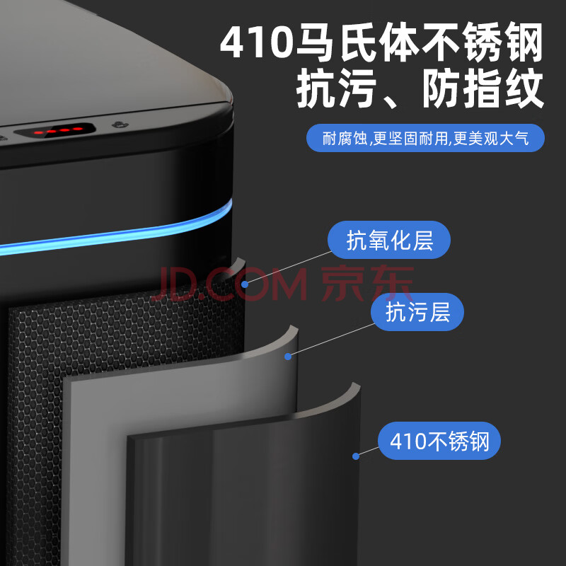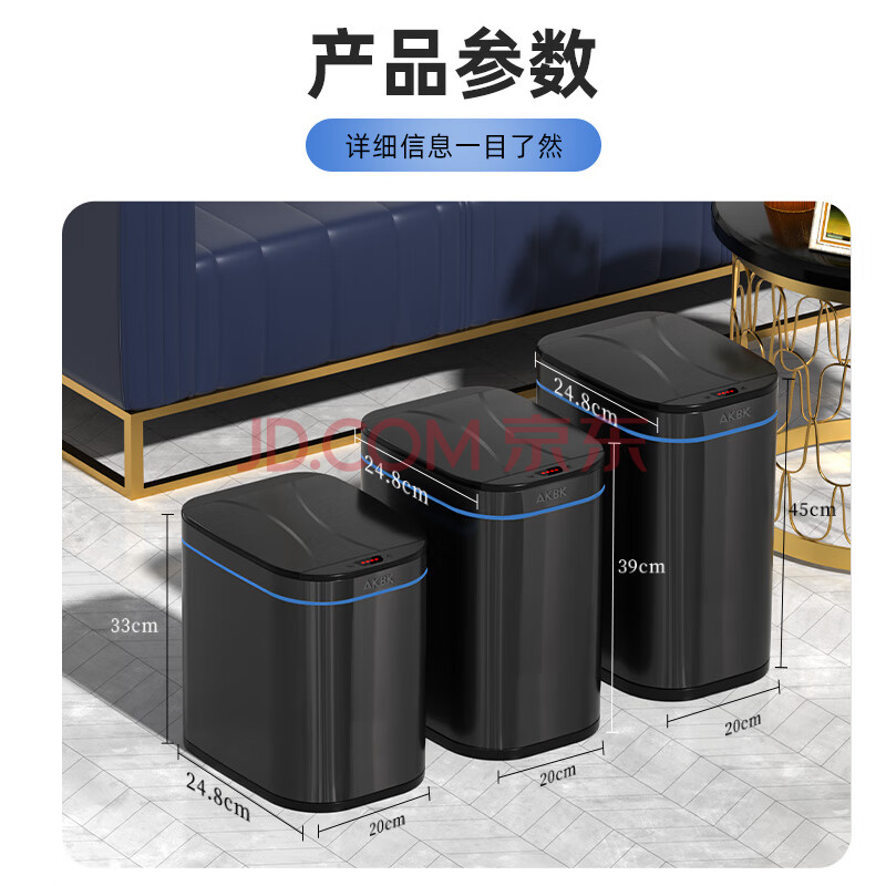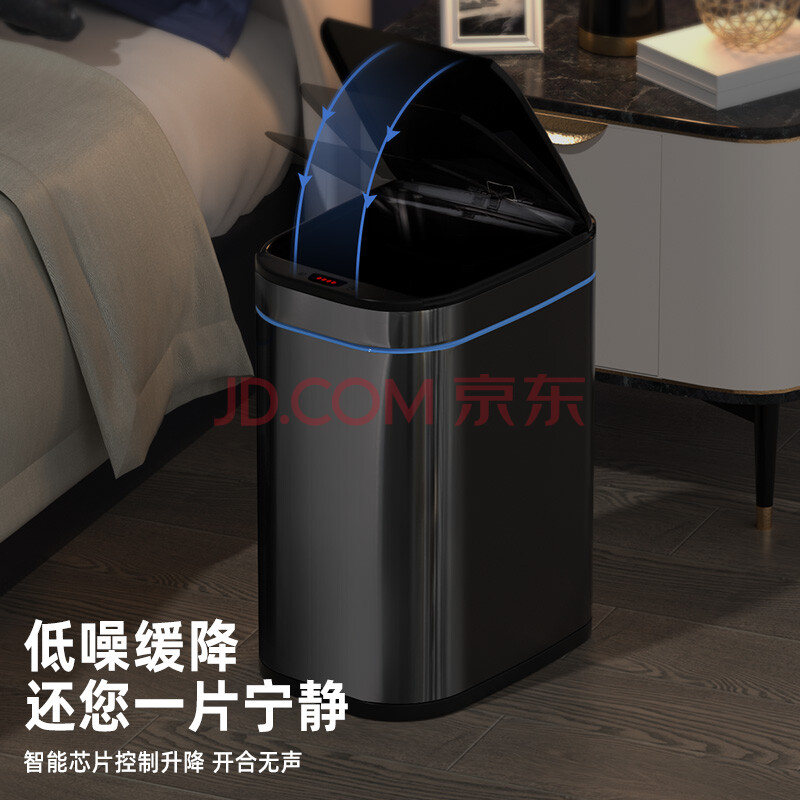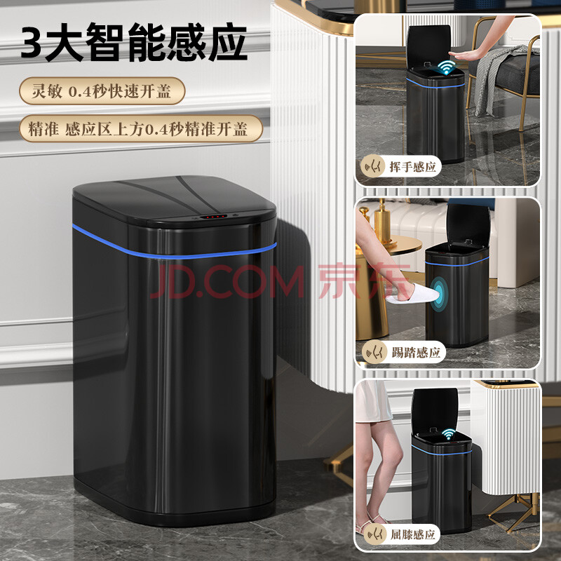 商品相册:AKBK不锈钢智能感应垃圾桶9L黑色自动大号客厅厨房卫生间厕所电动带盖第
